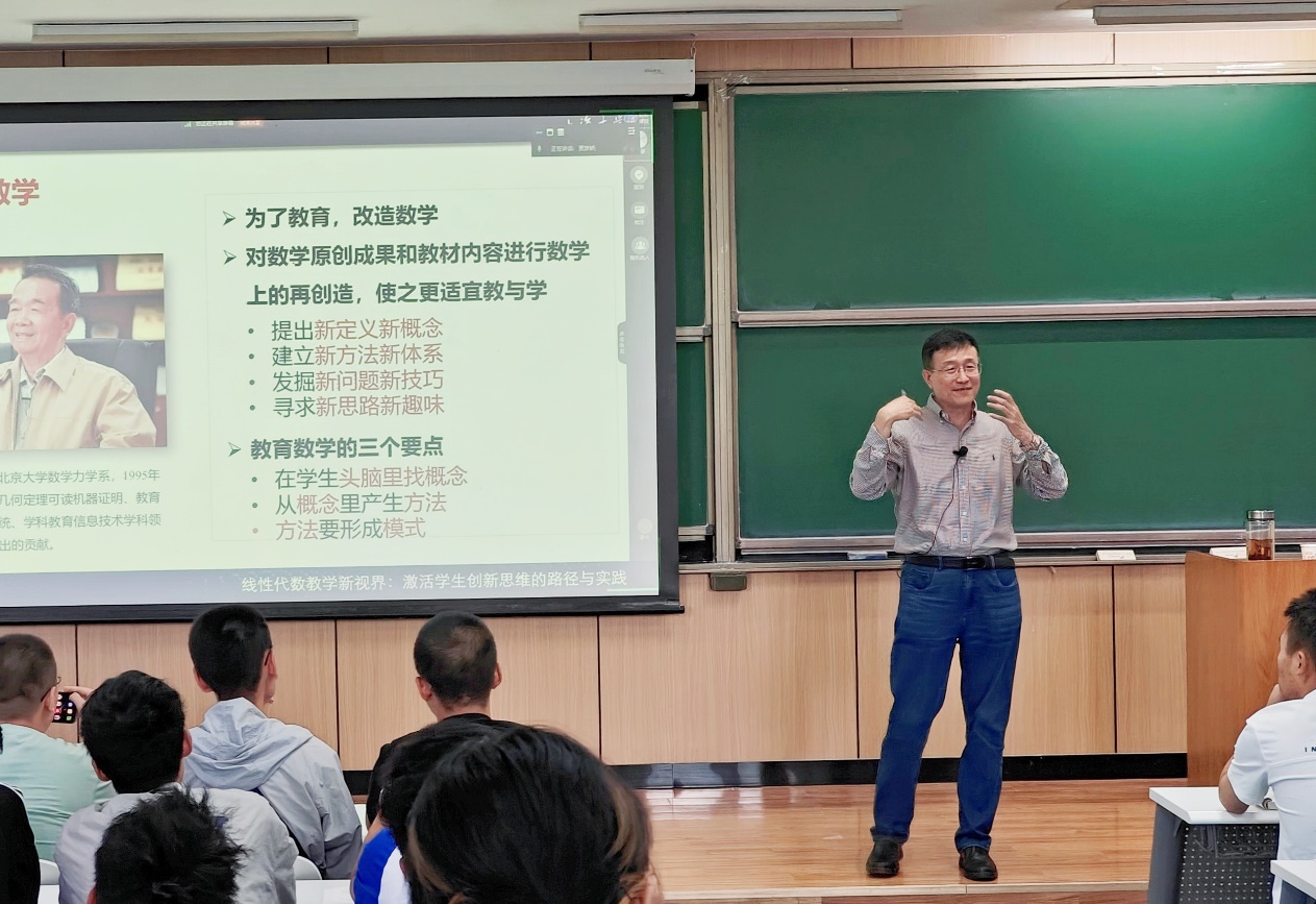 2025年9月21日上午,应数学拔尖人才培养模式改革(华罗庚数学实验班)虚拟教研室、大学数学课程群虚拟教研室(西安交通大学)、面向人文社科学生的大学数学课程群虚拟教研室(中国人民大学)联合之邀,国家级教学名师、中国高等教育学会教育数学专业委员会理事长、上海大学王卿文教授在BBIN宝盈集团沙河校区作了题为“线性代数教学新视界——激活学生创新思维的路径构建与实践探索”的精彩报告,线上线下近300名师生同步聆听。报告由BBIN宝盈集团蓝天教授杨义川主持。
