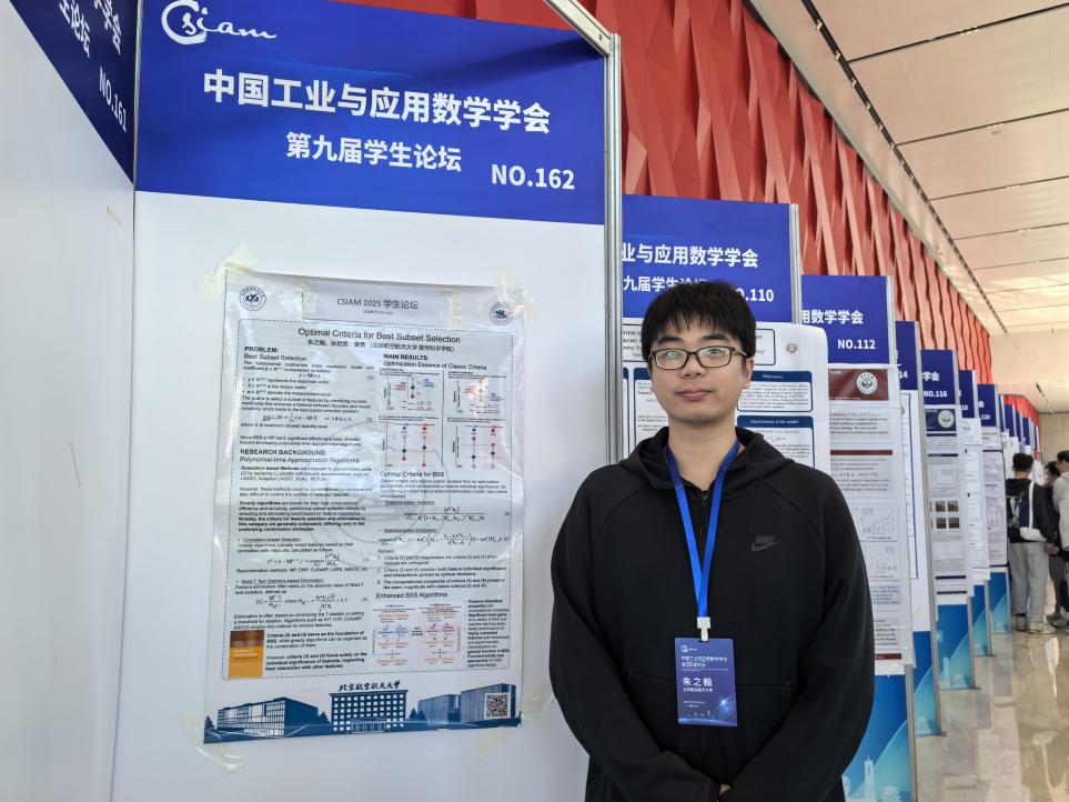 北京航空天大学BBIN宝盈集团23级博士研究生朱之翰进行了题为“Optimal Criteria for Best Subset Selection”的海报展示。
